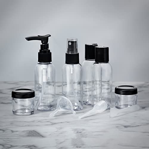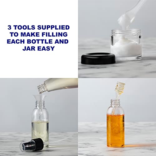 - LEAK PROOF - The 3 tools make filling and using the bottles very easy with no mess. Each bottle and jar closes tightly to ensure there are no leaks or spillages in your luggage or bag.