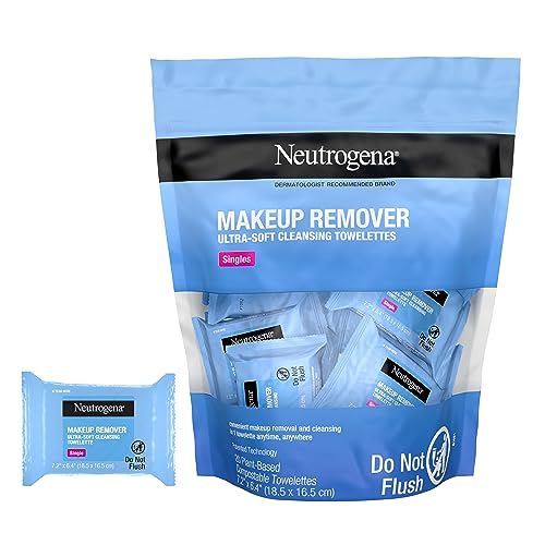 Neutrogena Makeup Remover Facial Cleansing Towelette Singles, Daily Face Wipes to Remove Dirt, Oil, Makeup & Waterproof Mascara, Gentle, Alcohol- Neutrogena Makeup Remover Facial Cleansing Towelette Singles, Daily Face Wipes to Remove Dirt, Oil, Makeup & Waterproof Mascara, Gentle, Alcohol-