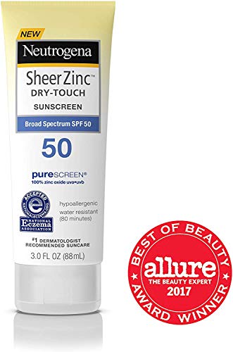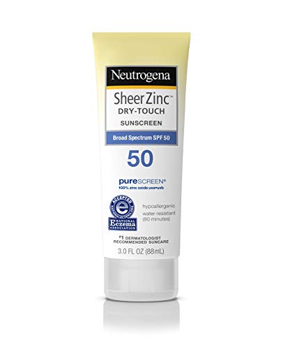Neutrogena Sheer Zinc Oxide Dry-Touch Sunscreen Lotion with Broad Spectrum SPF 50, Water-Resistant, Hypoallergenic & Non-Greasy Mineral Sunscreen