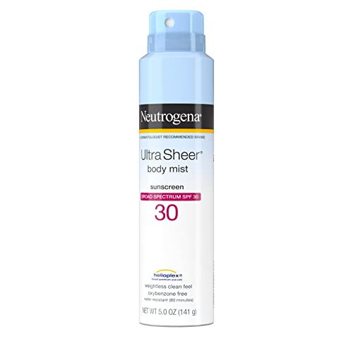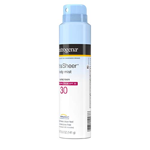 Neutrogena Ultra Sheer Body Mist Sunscreen Spray Broad Spectrum SPF 30, Lightweight, Non-Greasy & Water Resistant, Oil-Free & Non-Comedogenic, Ox