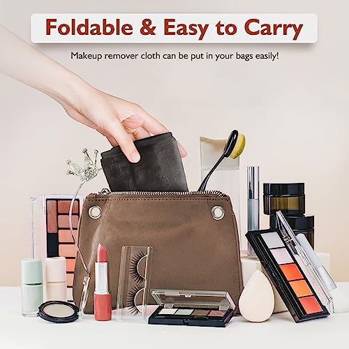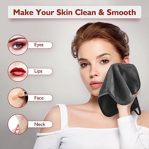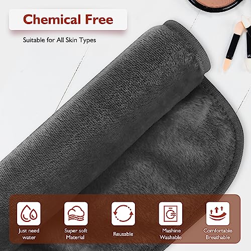Nineigh Makeup Remover Cloth, Microfiber Flannel Face Cloth 6pcs Reusable Facial Cleansing Cloth for All Skin Types Make Up Removing, Grey