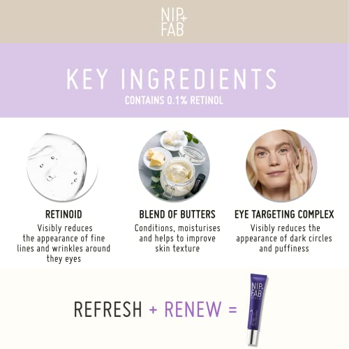 Nip + Fab Retinol Fix Eye Treatment 0.1% Retinol Eye Cream Anti-Aging Moisturizing for Fine Lines Wrinkles Dark Circles Puffiness and Bags Under