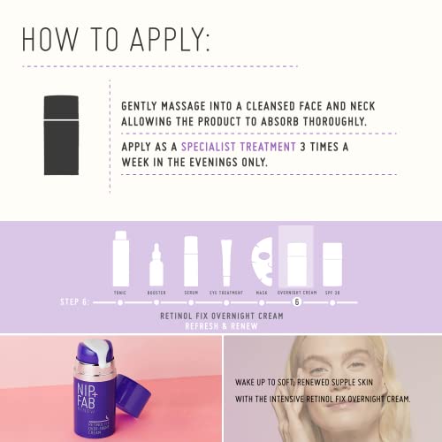• PACKED WITH ANTI-AGING RETINOL - Nip + Fab Retinol Fix Overnight Cream for face is packed with the anti-aging ingredient retinol that goes to work to reduce the visible signs of aging