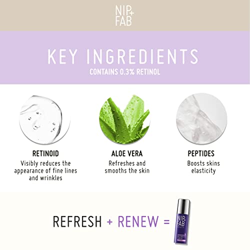 Home Skin Care Nip + Fab Retinol Fix Serum Extreme 0.3% for Face with Aloe Vera and Peptides, Anti-Aging Facial Cream for Fine Lines and Wrinkles, 50 ml