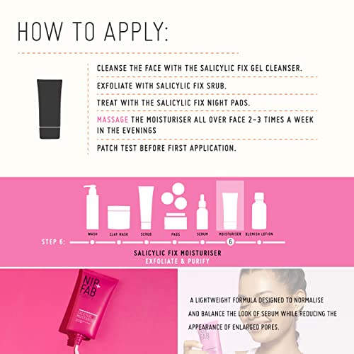 - SKIN BALANCING MOISTURIZER - Nip + Fab Salicylic Acid Fix Moisturizer for face is formulated to avoid breakouts and improve the complexion of your skin, Skin balancing face moisturiser that will moisturize and plump the skin