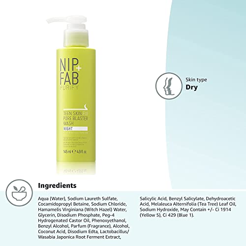 - HELP YOUR SKIN STAY CLEAR - Nip + Fab Teen Skin Fix Pore Blaster Night Wash is a night face wash enriched with powerful extracts to help skin stay clear of breakouts without drying the skin