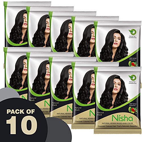 Nisha Henna Based Natural Black Hair Color 10 Gm Pack of 10 Henna Hair Color For Men and Women Black Hair Color