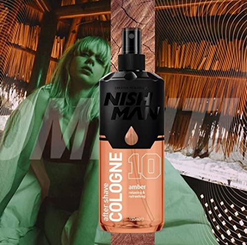 NISHMAN After Shave Cologne Amber 10, 150ml – Nishman Relaxing Refreshing Aftershaving Spray Lotion Kolonya for Men–Contains pear, peach, raspber