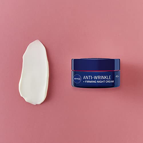 Home Skin Care NIVEA Anti-Wrinkle and Firming Night Cream (50ml), Overnight Moisturiser for 45+ Skin, With Shea Butter, Macadamia Nut Oil, and Panthenol for Enh