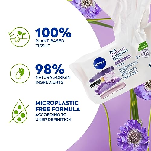 NIVEA Biodegradable Cleansing Wipes Sensitive Skin, Wipes from 100 percent Plant Fibres, Sensitive Make-Up Wipes, Face Wipes Makeup Remover, 25 C NIVEA Biodegradable Cleansing Wipes Sensitive Skin, Wipes from 100 percent Plant Fibres, Sensitive Make-Up Wipes, Face Wipes Makeup Remover, 25 C