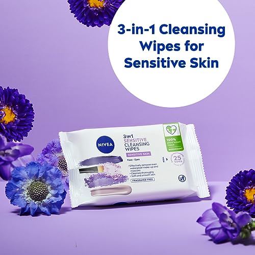 Home Skin Care NIVEA Biodegradable Cleansing Wipes Sensitive Skin, Wipes from 100 percent Plant Fibres, Sensitive Make-Up Wipes, Face Wipes Makeup Remover, 25 C