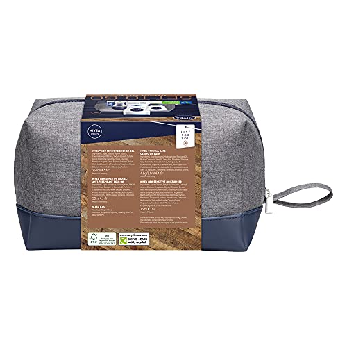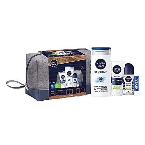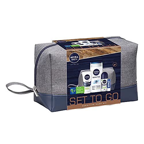 NIVEA MEN Set to Go Sensitive Wash Kit Giftset, Men's Toiletry Gift Set for Sensitive Skin Care, with NIVEA MEN Crème, Men Gift Set for Skincare NIVEA MEN Set to Go Sensitive Wash Kit Giftset, Men's Toiletry Gift Set for Sensitive Skin Care, with NIVEA MEN Crème, Men Gift Set for Skincare