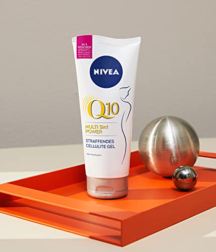 - Box contents: NIVEA Q10 Plus anti-cellulite and firming gel cream for firmer skin, 1 x 200 ml tube.
