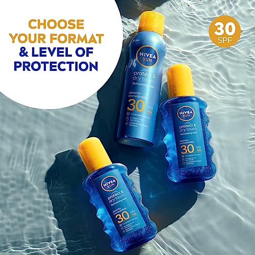 NIVEA SUN Protect & Dry Touch Refreshing Sun Mist SPF 30 (200 ml), Water-Resistant Suncream Offers Immediate UVA & UVB Protection, Transparent, L NIVEA SUN Protect & Dry Touch Refreshing Sun Mist SPF 30 (200 ml), Water-Resistant Suncream Offers Immediate UVA & UVB Protection, Transparent, L