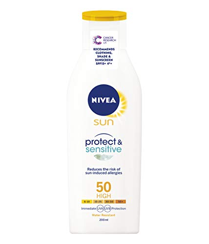 NIVEA SUN Protect & Sensitive Sun Lotion (200ml), Sunscreen with SPF30, Suncream for Sensitive Skin with Aloe Vera, Immediately Protects Against NIVEA SUN Protect & Sensitive Sun Lotion (200ml), Sunscreen with SPF30, Suncream for Sensitive Skin with Aloe Vera, Immediately Protects Against