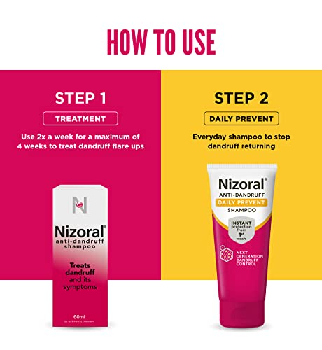 Nizoral Anti-dandruff Shampoo 60ml, clinically proven Treatment for dandruff flare ups, relieve itching, helps remove flakes and soothe inflammat