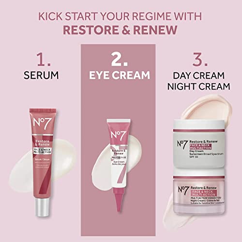 - Reveal Youthful Glowing Skin Around the Eyes Unlike some puffy eye treatment products you can seamlessly pair this under eye cream with your entire skincare routine. Pair with No7 Restore & Renew Multi Action ightening cream to reveal youthful looking skin.