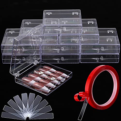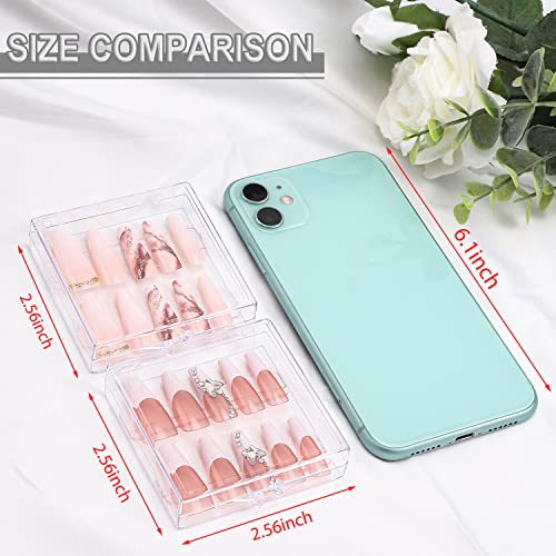 - 💅💅【Pack & Size】-- You will receive 10 pieces of empty press on nail storage boxes with 10 pieces of arcylic nail display sticks, and 1 piece of double-side tape. (Nails not included) Please **NOTE** the size: Approx. measurement inside box : 2.56 x 2.56 inches / 6.5 x 6.5cm.