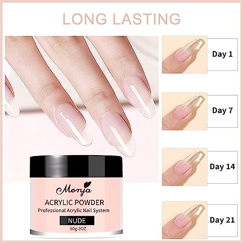 - LONG LASTING - The combination of acrylic nail powder and acrylic liquid will create a protective layer to protect your natural nails, which will not split or peel and provides high hardness. At least can be maintained for about 28 days.