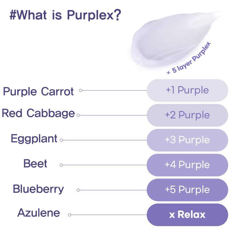 - NO aritificial colorant used : The light purple color of the cream comes from the ingredients' natural colors such as azulene and purple vegetable extracts.