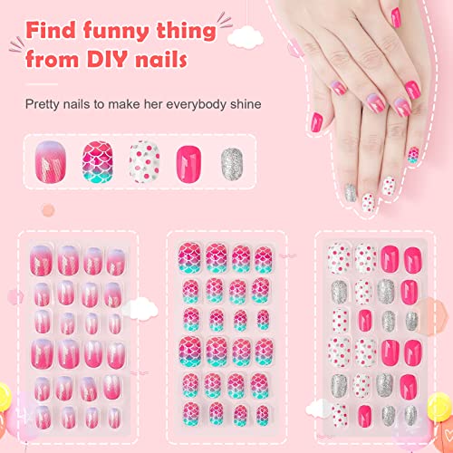 - ✨【Lovely Design】Children's artificial nails have different pattern designs, sweet and lovely, and give your little girl a dreamlike decoration.