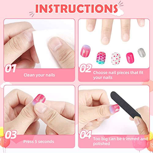 - ✨【Safety Material】Children’s false nails are made of non-toxic, odorless, and environmentally friendly plastic. lightweight, breathable, and long-lasting, it will not be a burden to stick on your nails. and is safe for children's nails and skin.