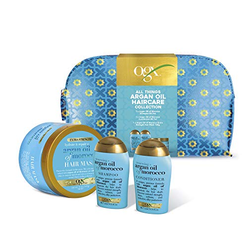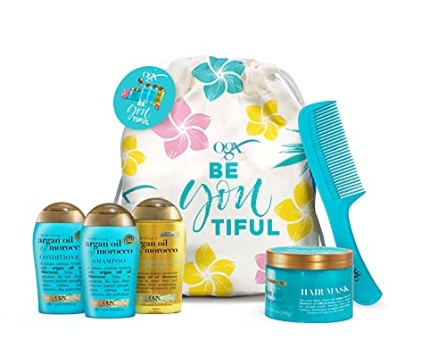OGX Argan Oil of Morocco Satchel with mini shampoo, mini conditioner, hair oil, hair mask , drawstring bag and comb OGX Argan Oil of Morocco Satchel with mini shampoo, mini conditioner, hair oil, hair mask , drawstring bag and comb