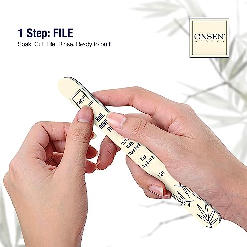 - 【HEALTHY, NATURAL NAILS】– Restore nail health, transform your hands, and turn every at-home manicure into a spa-like experience with the complete nail file and buffer kit from Onsen! File and shape your nails with Onsen’s professional nail filer, smooth the surface of each nail with with nail buffer, and then promote healthy, even growth with the nourishing cuticle cream.
