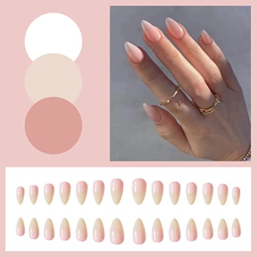 Oval Fake Nails Short, 24Pcs Nude Pink Gradient False Nails, Stiletto Press on Nails Pattern, Almond Stick on Nails, French Nail Tips with Nail G