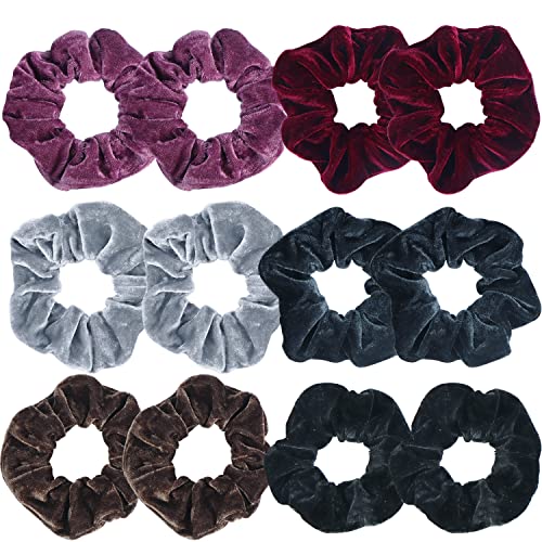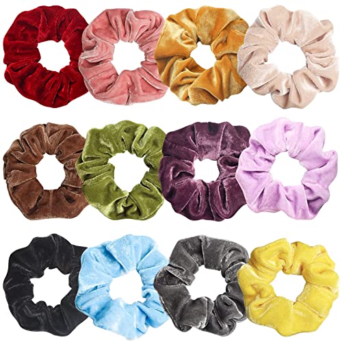 - 12 PACK OF SOLID COLOR VELVET SCRUNCHIES:Available in pink, beige, yellow, light purple, blue, burgundy, black, orange, gray, dark purple, green, coffee - enough for daily wearing or sharing with friends and families.