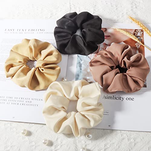OWill 4Pcs Hair Scrunchies for Women,Premium Satin Scrunchie Ponytail Holder,Solid Color Elastic Bands for Girls,Hair Ties Accessories for Frizz