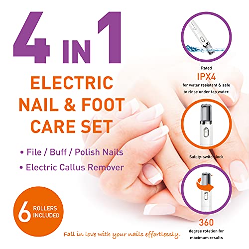 - ✓ SAFE for your nails and feet, so you never have to worry about filing too low! ERGONOMIC DESIGN that's gentle on your wrists. Now you can beautify your toe and finger nails, and feet. Great for men & women; IMPORTANT: Use only with charger rated 5V 1A