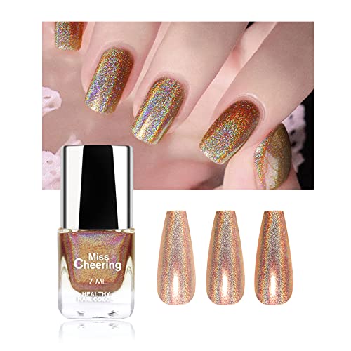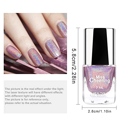 Ownest Laser Nail Polish, Pretty Shiny Mirror Glitter Holographic Long Lasting Nail Polish 7ml -LS06