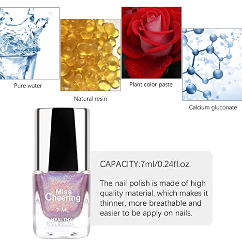 • 【Holographic Effect】Experience a stunning color with our holographic Nail Polish, Shifts Colors Based On Viewing Angles, high Gloss and Sparkle Glitter Shine, give glossy and long-lasting nail color.