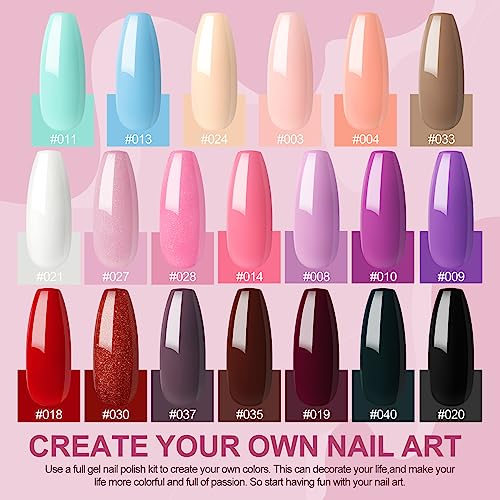 - 【Gel Nail Polish Kit】Well-selected 20 colours gel nail polish,glossy, glitter and ombre nail designs can be freely finished with these vibrant color gel. A wide selection of colors and designs will give you an attractive appearance,create your own style with our gel nail polish kit!