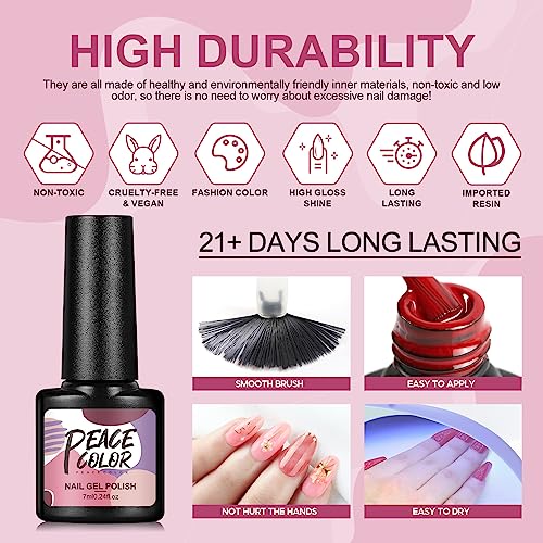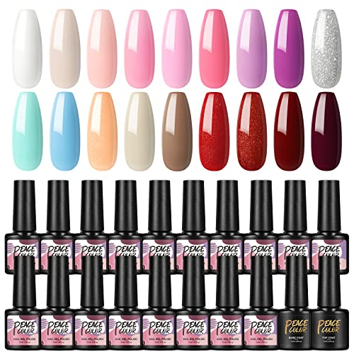 - 【Salon at Home】PEACECOLOR nail gel polish kit comes with everything you need for nail art, including 7ml x 20 colour nail gel polish, 7ml x base coat and top coat, nail art decorations and a diverse of manicure tools.You can do any nail decorations, sutiable for both home manicure and professional salon.