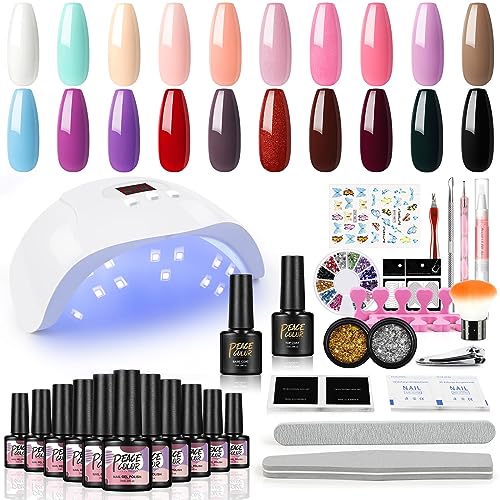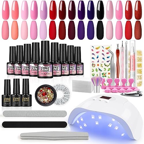 - 【Ideal Gift for Women】 PEACECOLOR gel nail starter kit help to create your own nail design. Easy application for expanding natural nails, UV nail gel nails, false nails and acrylic nails. It's an ideal gift for Birthday, Anniversaries,Chirtmas gift for women and girls.