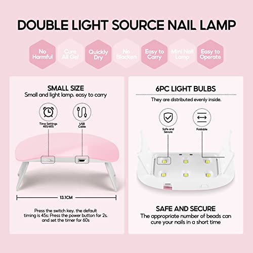 - Gel Nail Polish Starter Kit: included 6pcs pink red gel polish,6w mini nail lamp,and essential manicure tools.It's easy to use, although beginner also can enjoy doing nail arts with friends or family anytime!