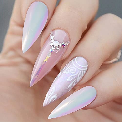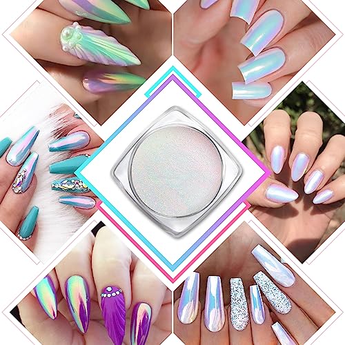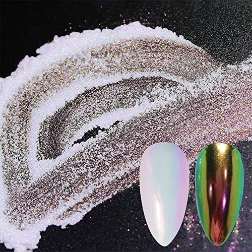 Pearl Chrome Nail Powder - DRMODE Unicorn Iridescent White Powder with Mermaid Neon Rainbow Effect, Multi Color Changing Opal Aurora Nail Pigment Pearl Chrome Nail Powder - DRMODE Unicorn Iridescent White Powder with Mermaid Neon Rainbow Effect, Multi Color Changing Opal Aurora Nail Pigment