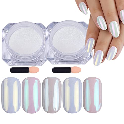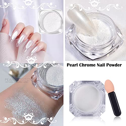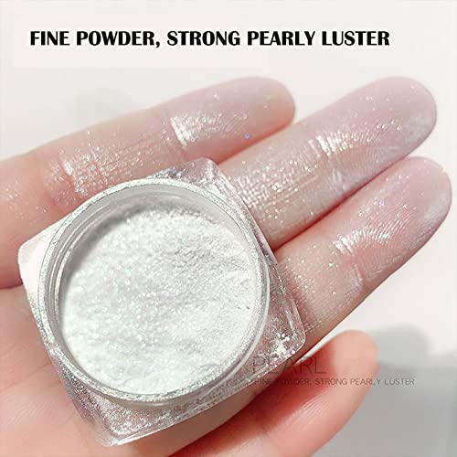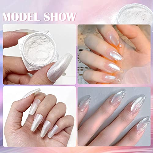 - 【White Pearl Nail Powder】Ice transparent aurora nail powder is brighter and shiny, chrome powder has its own glitter, bright and transparent high glossy effect. The powerful pearl effect will show a slight flashing blue light visual sense with the change of light intensity. Make it shines like pearls in the sea