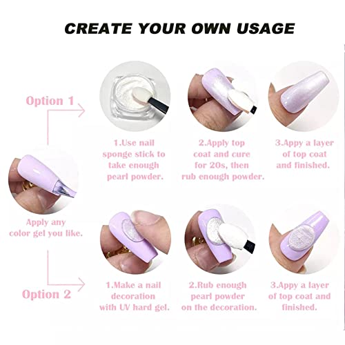 - 【Wide Application】The white chrome pearl nail powder not only can be used for nail decoration on UV gel nails, acrylic nails and natural nails, but also can be used to decorate mobile phone cases,greeting cards, clothes, shoes,DIY crafts, etc.