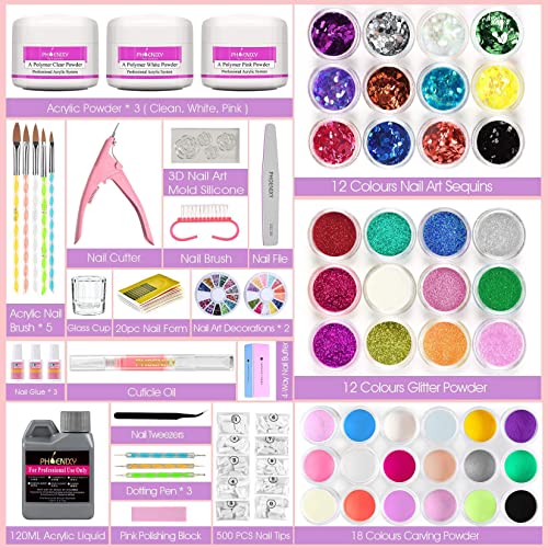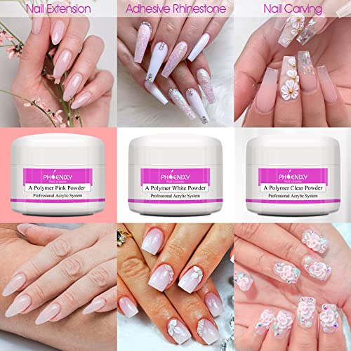- Acrylic Nail Set and Best Gifts - Powder and 120ml liquid set with everything for doing acrylic nails with different kinds of nail decorations. You can design your own nails at home with this kit. Also a suitable kit as a present to give away to your friends or your family members. Phoenixy acrylic nail kit is also a perfect choice for women.