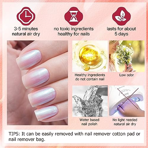 - 【Environmental & Healthy】 Our Nail Polish was made of natural resin, healthy and environment-friendly.Healthy ingredient with low odor! No harsh ingredients or adhesives that lead to damaged nails.