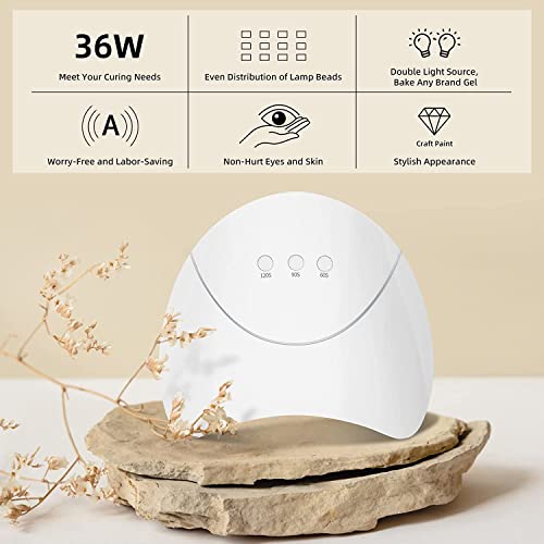 - [Simple Nail Lamp]: 36W USB Nail Lamp for gel nails with 3 timer settings (60s, 90s, 120s) and auto sensor; USB nail lamp, easy to portable and use, suitable for drying all kinds of gel such as acrylic gel, uv/led gel nail polish, builder nail gel. [Note: We suggest use phone adapter to contact with USB nail light]