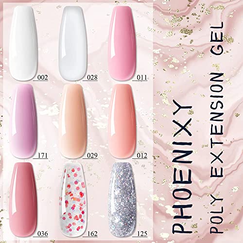 - [Idea Gift for Women]: You can’ t go wrong with the 9 colours poly nail gel for her. Beauty starts with Phoenixy nail kit! The high quality and practical exquisite kit is a good gift set for birthday, wedding anniversary, Valentine's Day, Christmas and New Year's Day.