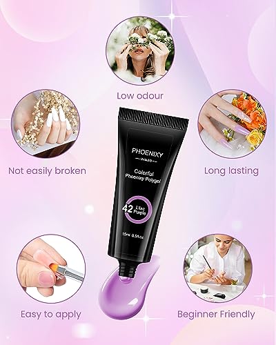 - High Quality & Long-Lasting - Phoenixy poly nail gel for professional nail set contains 14 natural ingredients keeping your nails healthy with a low odor formula, no harsh ingredients. Poly nail gel lasts up to a month if you operate properly. A thick layer of nail gel will keep longer. What's more, you can refill your nails about every two weeks when the new cuticle area grows.