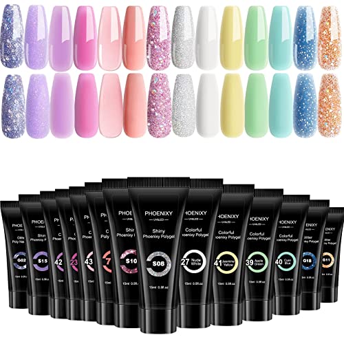 - Phoenixy Poly Nail Gel Kit - Poly nail extension gel kit includes 15ml 14 colours builder nail gel for nails. You can enjoy DIY fun at home with your friends and family.