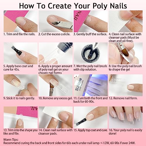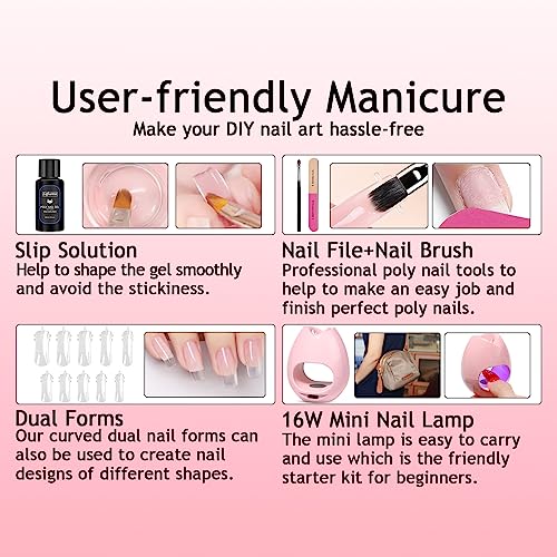 • 【Easy to Use】Poly nail gel is easy to build beautiful nail shape with slip solution, you can dip the brush in slip solution before brushing the gel, so it can be picked and formed on dual forms smoothly