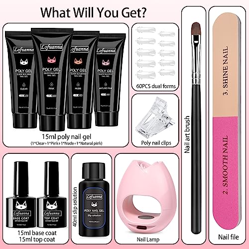 Poly Nail Gel Kit Poly Gel Nail Kit With Lamp Builder Gel Nail Kit 4 Colors 15ML Poly Nail Extension Gel Kit with Mini UV Nail Lamp Slip Solution Poly Nail Gel Kit Poly Gel Nail Kit With Lamp Builder Gel Nail Kit 4 Colors 15ML Poly Nail Extension Gel Kit with Mini UV Nail Lamp Slip Solution