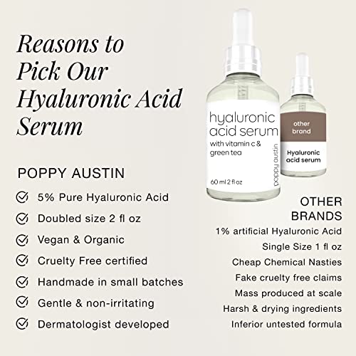Poppy Austin 60mL Face Serum- Pure Hyaluronic Acid Serum for Face- Skin Serum for Women with Vitamin C- Vegan, Cruelty-Free Anti Aging Serum- Hyd
